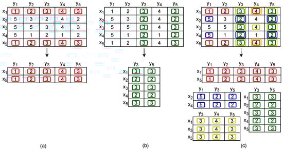 - Dhillon, I.S.; Mallela, S.; Modha, D.S. Information-theoretic co-clustering. In Proceedings of the Ninth ACM SIGKDD International Conference on Knowledge Discovery and Data Mining, Washington, DC, USA, 24–27 August 2003; Getoor, L., Senator, T.E., Domingos, P.M., Faloutsos, C., Eds.; ACM: New York, NY, USA, 2003; pp. 89–98. [Google Scholar] [CrossRef]