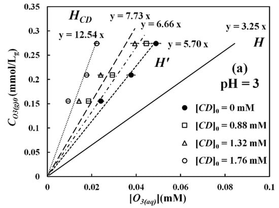 H) in Equation (6), which describes pure physical equilibrium between gaseous and aqueous ozone. In terms of pH effect, the