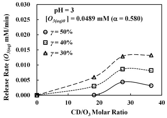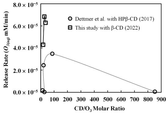 Table 2 and the release rates from Dettmer’s study are plotted as a function of the CD-to-ozone molar ratio. In Dettmer’s study, the lowest release rate of 1.7 × 10