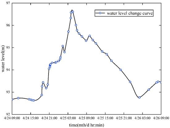 At 18:35 on 24 April 2021, the upstream ice dam burst, and the water level in the study area encompassing the Mohe section changed sharply. From 18:35 on 24 April 2021 to 5:00 on 25 April 2021, ice jams were formed many times downstream of the Mohe section research area, resulting in rapid water level rise in the research area. Until 5:00 on 25 April 2021, the Mohe section in Heilongjiang remained fully open, the water level in the research area decreased rapidly, and the ice velocity was high. At 16:00 on 25 April, the average velocity of ice was 2.00 m/s. At 8:00 on 26 April 2021, the water level in the research area dropped to the normal level, the ice flood period in Heilongjiang had basically ended (as shown in Figure 8), the ice velocity was low, and the average velocity of ice reached 0.74 m/s, which was in line with the actual situation.