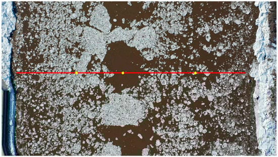 With the continuous improvement of unmanned aerial vehicles (UAVs) and sensor technology, small UAVs have been widely deployed in low-altitude remote sensing measurements [,,,]. Compared to the visual and GPS-based tracking methods, the multisensor UAV platform exhibits the characteristics of high efficiency, low cost, flexible operation, and strong suitability in complex river environments. This technique not only overcomes the difficulty of image data acquisition but also avoids the image distortion phenomenon attributed to side shooting from the shore, which improves the accuracy of the original data and provides a new technical means for ice velocity monitoring within a large range.