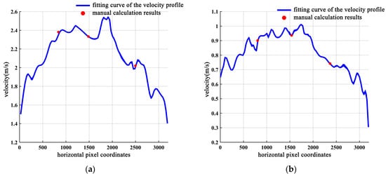 Comparison of plane velocity field based on SIFT algorithm and manual calculation: (a) 16:00, 25 April 2021; (b) 8:00, 26 April 2021.
