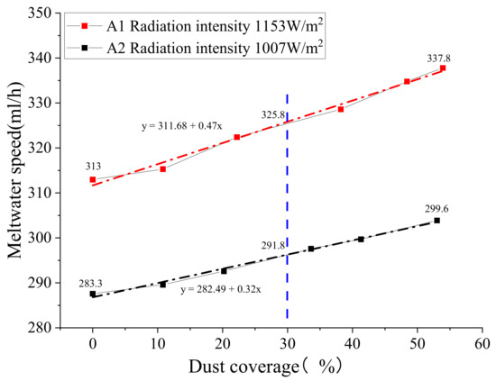 3.1. Relationship between Mineral Dust Coverage Rate, Radiation Intensity, and Ablation Rate