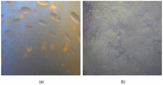 The results of the pilot measurements on the HJ-3 extraction well agree with both the geophysical logging [] and the camera inspection of the measured extraction well HJ-3 [], where incrustation on the inner side of the extraction well was easily recognizable. Examples of camera inspection pictures are shown in Figure 14, comparing images from the new extraction well HJ-4 and the extraction well HJ-3.