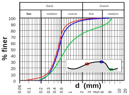 - Klaassen, G.J. Experiments on the effect of gradation and vertical sorting on sediment transport phenomena in the dune phase. In Proceedings of the International Grain Sorting Seminar, Ascono, Switzerland, 21–26 October 1991; Mitteilungen der Versuchsanstalt fur Wasserbau, Hydrologie und Glaziologie an der Eidgenossischen Technischen Hochschule: Zürich, Switzerland, 1992. Heft 117. [Google Scholar]