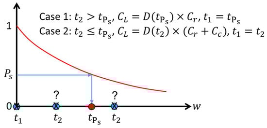 Since the exact time instance for a break to take place is unknown, this study takes the survival probability computed as Equation (3) as a time indicator for taking a replacement action. The idea is illustrated in Figure 4.