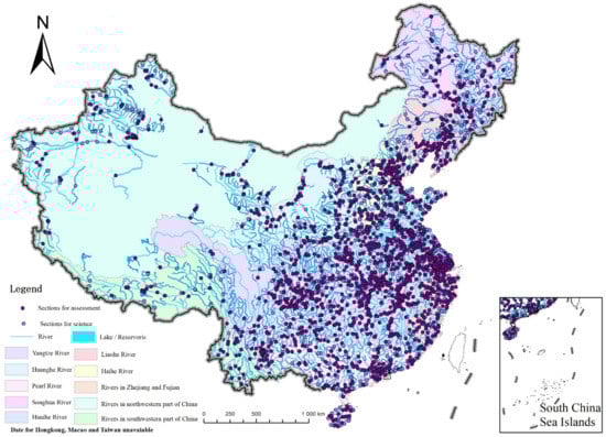 In 1988, the former National Environmental Protection Agency (NEPA) first established a national surface water quality monitoring network consisting of 353 sections. In 1993, the NEPA re-examined and certified the monitoring sections in the national control monitoring network and confirmed that the national surface water quality monitoring network consisted of 313 national control sections [14,15].