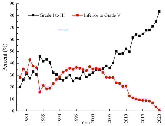 Annual ratio of water quality in China during 1978–2020.