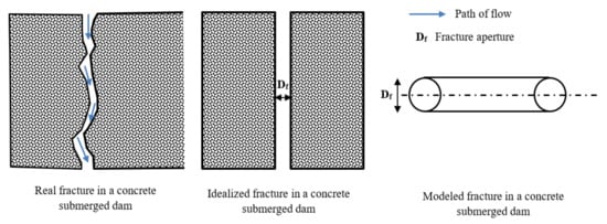 Real, idealized, and modeled fracture shapes in a concrete subsurface dam [24].