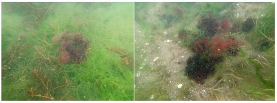 During field studies, two representatives of Rhodophytes, i.e., Coccotylus brodiei (Figure 2) and Furcellaria lumbricalis (Figure 3) (both belonging to separate families within the order Gigartinales) were observed that have not been reported in Puck Bay since 1979. Both species were observed in the form of free-floating thalli (Figure 4) in areas where flora covered 80–100% of the bottom.
