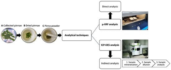 Flowchart demonstrating technical steps used in the approaches of μXRF and ICP–OES analyses.