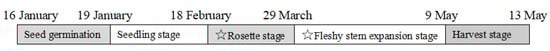 The division of growth stage for the lettuce (☆ indicates that at this stage, the lettuces were treated with different lower limits of drip irrigation).