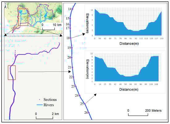 There are 1284 sections in the one-dimensional model in the region, and the distribution and construction range of each section are shown in Figure 5.