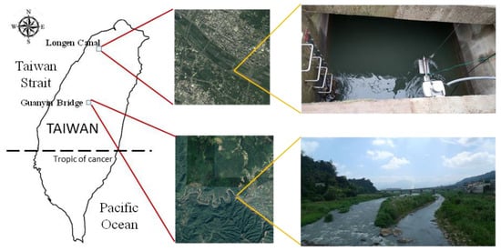 This study applied field data collected in a natural river and an artificial channel to verify the proposed approach. The study sites are located along Nankang River at Guanyin Bridge in central Taiwan and along Longen Channel in Hsinchu, northern Taiwan (Figure 3).