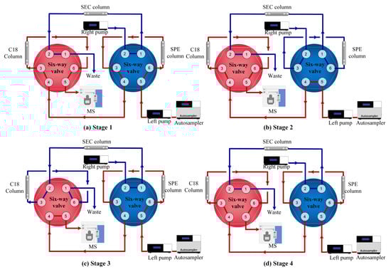 Scheme of the online SPE/SEC/LCMS system with four stages.