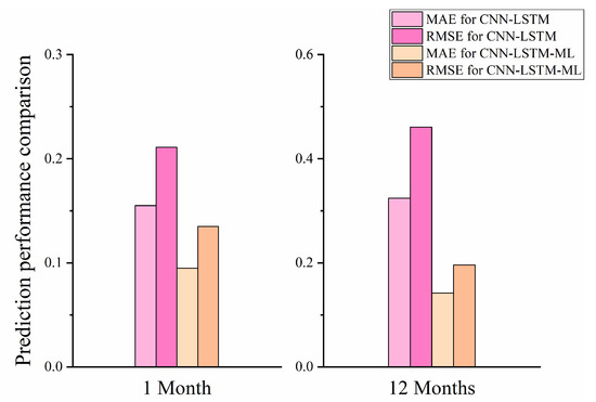In order to correctly describe the predictive performance of CNN-LSTM-ML, this study uses two commonly used model accuracy evaluation indicators, namely the root mean square error (RMSE) and the mean absolute error (MAE) [74]. The calculation is as follows: