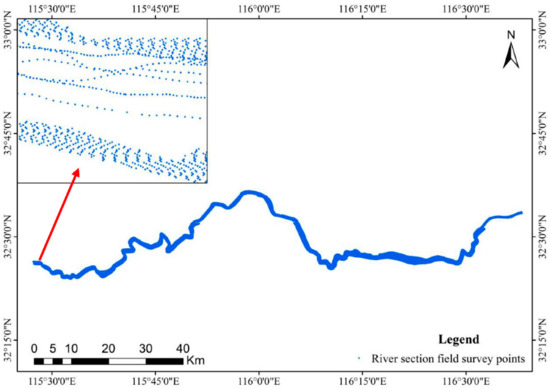Measured points on river section (the upper left corner of the figure is a point zoom display).