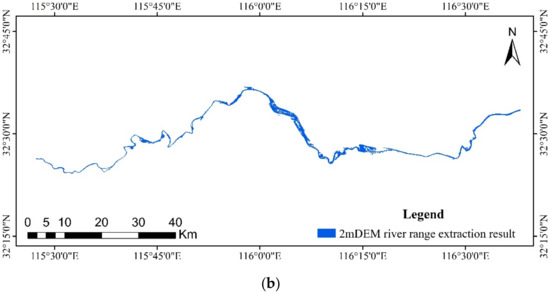 In conclusion, it is possible to employ GF-1 water body extraction results to complement DEM river range extraction results, but not for plain areas. On the one hand, the plain area’s topography is not clear; on the other hand, because many rivers in the plain area contain a high number of perennial water pools, water extraction data to complement channel scope would increase the area of non-channel, resulting in inaccuracies. The Jenks natural breaks classification approach based on DEM can be used to extract river range; however, it is more suitable for hilly and mountainous regions with evident terrain changes. Other methods must be studied further for DEMs with medium and low accuracy in order to quickly extract the scope of a river.