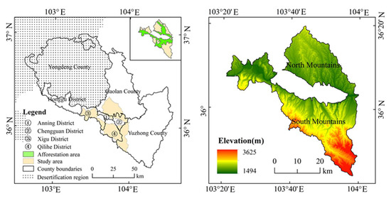 - Zhao, K.C.; Qu, L.B. Strategy of Vegetation Restoration in Lanzhou North-South Mountains. J. Desert Res. 2006, 3, 493–497. [Google Scholar]