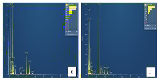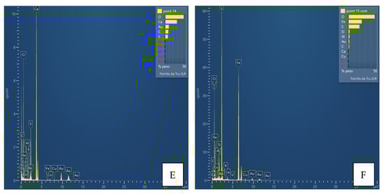 The results support and confirm the mineralogical classes suggested by the qualitative powder diffraction analyses, enriching them with important information on their chemical composition. The most significant points of data, however, are the size of the crystals, their degree of crystallinity and the confirmation of the presence of amorphous material, as well as its chemical composition. The As, Co, Cu and Zn contents were often found to be below the detection limit of the instrument; thus, only in some cases the presence of elements, e.g., Cu, was detected (Figure 10). The presence of amorphous material also suggests that trace or minor chemical species are not necessarily included in a crystalline structure but may “stick” on the surface of the non-crystalline material. In any case, there is no evidence at the moment that these elements form their own phases.