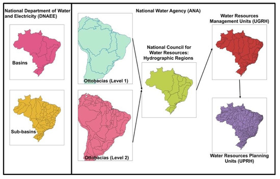 In 1972, the National Department of Water and Electricity (DNAEE) of Brazil created a database for water resource management. Currently, the Otto–Pfafstetter concept of Ottobacias serves as the official base for water resource management. They do not correspond to the specialized basins created by DNAEE (Figure 5).
