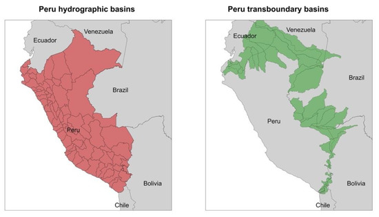In turn, the National Water Agency of Peru (ANA-Peru) provides data for its territory and for the extension of transboundary basins on a scale of 1:100,000, as indicated in the following Figure 7.