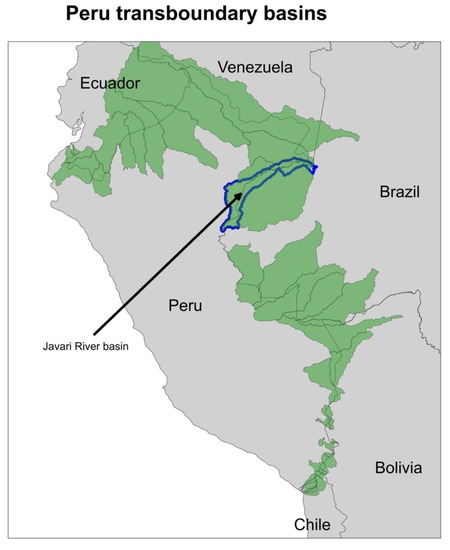 Peru’s transboundary basins. In blue, lines that delimit the Javari River basin.