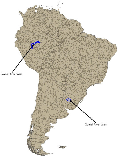 The Food and Agriculture Organization (FAO) repository makes spatialized data from South American watersheds available in a geoportal called Aquamaps, which was consulted after the mentioned definition of specific criteria.