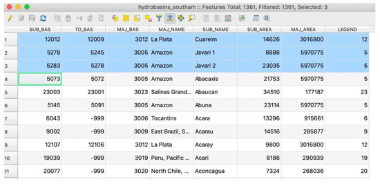Additionally, international sources of watershed data covering South America were used for this research: the Food and Agriculture Organization (FAO) repository provides a Geoportal, which provides spatialized data on hydrographic basins and drainages from around the world. The World Wide Fund for Nature (WWF) and The United States Geological Survey (USGS) collaborated on this data as part of a project called HydroATLAS [29].