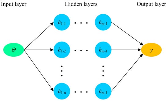 where and denote the inputs and outputs of the regression relationship, respectively; and the weights and bias, respectively; m is the number of hidden layers, and in this study; f is the activation function, including Sigmoid, Tanh, and Relu. The activation function used in this study is Tanh.