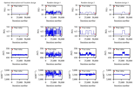 We compared the identification accuracy of GCSPs of the optimal design with that of three other random designs to verify the feasibility and effectiveness of the optimal design of OWLs proposed in Section 4.2. The OWLs of the optimal design and the other three random designs are shown in Figure 6. The corresponding trace plots of the MCMC simulation for the two case studies are shown in Figure 7 and Figure 8.