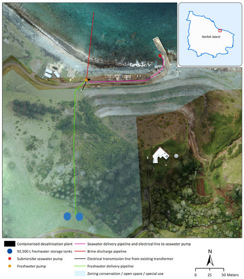 Potential desalination infrastructure configuration at Cascade Pier, Norfolk Island.