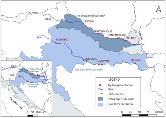 Location of the observed gauging stations on the Drava River and the Sava River in Croatia.