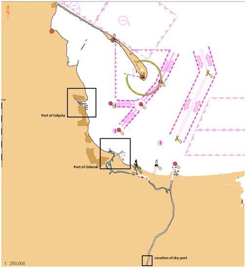 In addition to relieving road traffic, it will also reduce the emission of harmful substances to the environment and decrease transport costs, and moreover, it will solve the problem of transporting oversize loads [28]. However, the greatest benefit will be the development of seaports and the possibility of increasing transhipments [29,30,31]. If it is not enough, their competitiveness in the Baltic Sea area will also increase, and the interest in the Tri-City seaports, as places with efficiently prospering facilities, will be aroused.