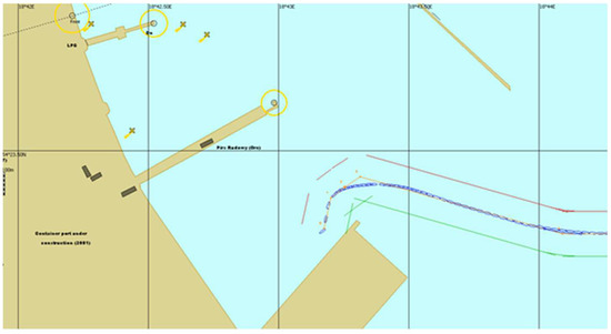 The realization of the simulation consisted of performing the unit’s manoeuvres on the planned routes. This type of simulated manoeuvres is used for an initial check of the dimensions and design of a given waterway. They were conducted on the basis of the automatic control system, which can be used and included in fast-time simulations during the initial planning for the general placement of aids to navigation in waterways and in the approach and access to ports, especially when evaluating several proposed designs and layouts. The helmsman is replaced by an advanced autopilot that reacts with a determined response to deviations from the track. As this autopilot is fed with perfect knowledge of the state of the vessel and the environmental influences, it is not certain that a human operator will be able to produce the same results. A subsequent full-mission simulator in combination with real-time simulations meets this requirement [7].