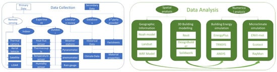 In this review, the approaches of the screened articles can be separated into two stages, the data collection stage and the data analysis stage. The typical methods and tools that were most often used for these two stages are illustrated in Figure 14.