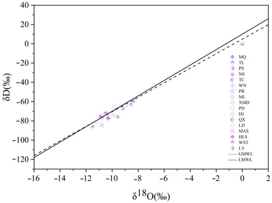 Stable oxygen and hydrogen isotope of the 20 hot springs and their correlations with GMWL and LMWL. LMWL: δD = 8.41δ18 O + 16.72 [5].