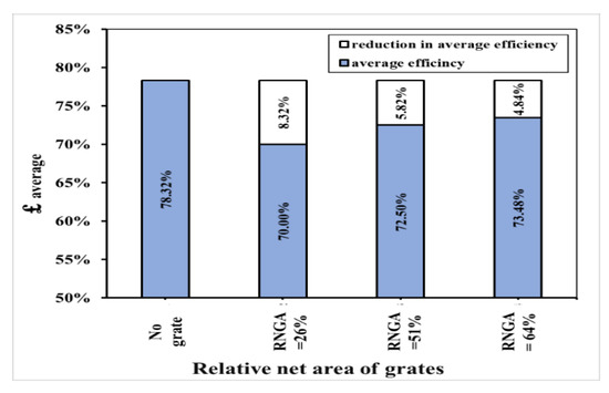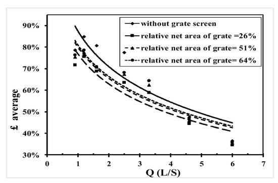 The average efficiency of discharge for different inlet area of grates.