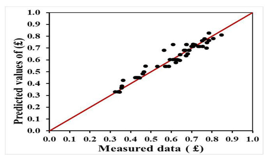 Measured £ versus predicted values from Equation (2).