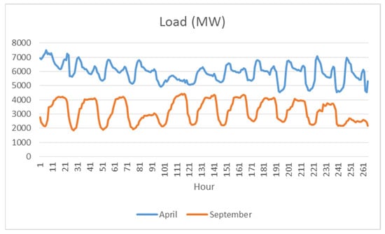 The energy prices in each season depend on the local load with higher price during higher demand. The hourly load demand in April is quite high compared to September.