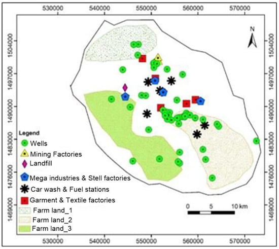 In addition to the possible natural influences described above, such as geology and structural features, various anthropogenic factors can degrade the quality of groundwater, usually after untreated domestic or industrial wastewater or irrigation water comes into contact and mixes with natural water resources [22,23]. Generally, the contaminants that are triggered by anthropogenic impacts can directly or indirectly influence groundwater quality. While the geogenic impact on water resources depends mainly on aquifer chemistry, the anthropogenic impact stems from nonpoint agricultural sources and wastes from households, municipalities, industries, and other human activities [24]. Because groundwater pollution is a slow process that can affect water quality on a local or regional scale [25], the planning and management of water resources are very essential in protecting and using water for different purposes [26].