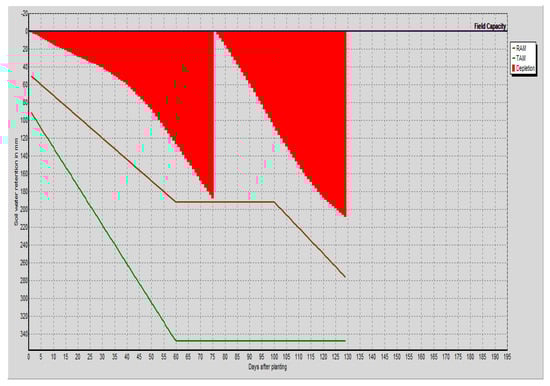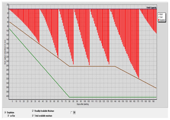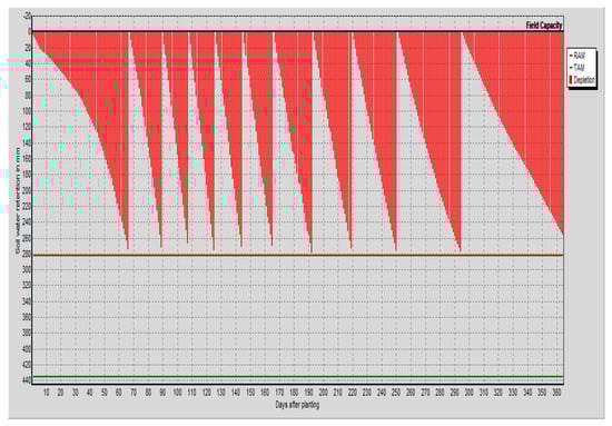 The correct quantity of water to irrigate and the correct moment in time for watering are determined by irrigation scheduling. The development of irrigation scheduling under different administration conditions and water supply plans is performed after the calculation of ETo, and IWR through the CROPWAT model [,,].