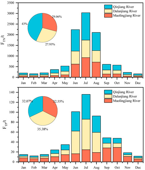 3.2. Seasonal Variations of the TN and TP Fluxes of the Rivers Discharged into the Maowei Sea