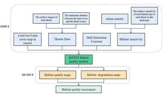 Working framework of InVEST habitat quality module, t stands for the study year.