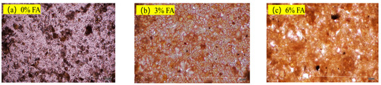 Microscopic morphology: (a) sludge with 0% FA, (b) sludge with 3% FA, and (c) sludge with 6% FA.