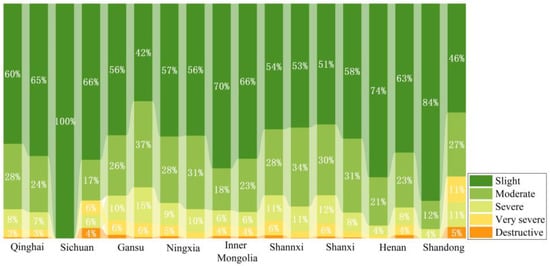 - From 2000 to 2020, the areas with severe soil erosion in the YRB were mainly concentrated in the three provinces of Gansu, Shanxi, and Shaanxi, and generally showed a northeast-southwest trend, and were distributed in the hilly areas and loess tableland in the middle of the Loess Plateau.