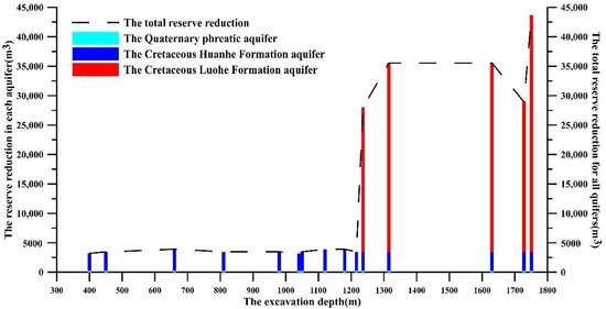 According to the drop depth of water level, the reserve changes of each aquifer are shown in Figure 9.