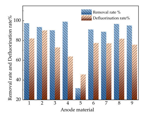 - Ma, Q.; Liu, L.; Cui, W.; Li, R.; Song, T.; Cui, Z. Electrochemical degradation of perfluorooctanoic acid (PFOA) by Yb-doped Ti/SnO2–Sb/PbO2 anodes and determination of the optimal conditions. RSC Adv. 2015, 5, 84856–84864. [Google Scholar] [CrossRef]