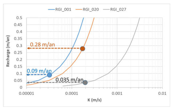 This relationship, therefore, makes it possible to estimate the natural recharge based on the piezometric level and the hydraulic conductivity of the aquifer at a given observation point.
