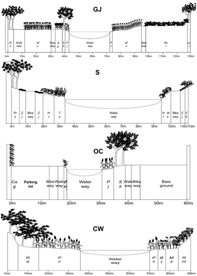 - An, J.H.; Lim, C.H.; Jung, S.H.; Kim, A.R.; Woo, D.M.; Lee, C.S. Diagnostic evaluation on the riparian vegetation in the Changwon and nam streams for preparing a restoration plan. J. Korean Soc. Water Environ. 2016, 32, 475–491. [Google Scholar] [CrossRef][Green Version]